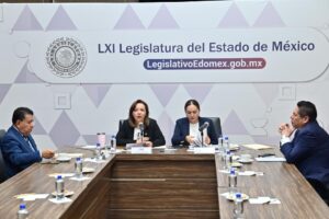 Analizan ley para impulsar cooperativas y Mipymes La diputada Lilia Urbina Salazar (PRI) y los legisladores Valentín González Bautista (Morena) y Sergio García Sosa, coordinador